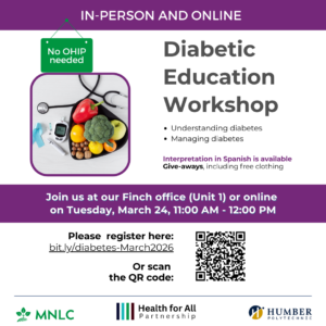 Free health services to anyone who has difficulties accessing health care. You don’t need to have an OHIP card for these services. In collaboration with the Humber Faculty of Health Sciences and Wellness – Bachelor of Nursing Program